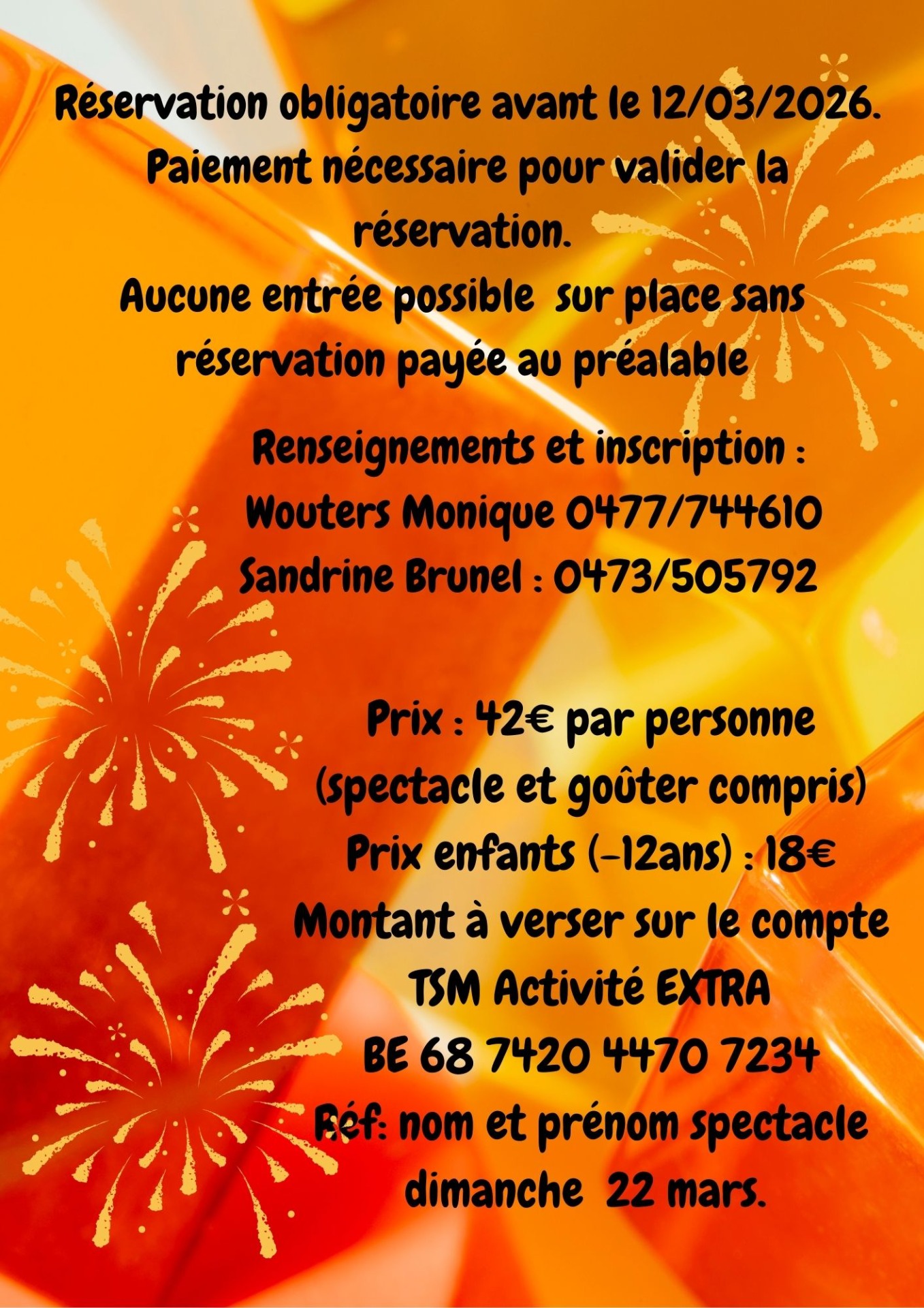Réf: nom et prénom spectacle dimanche 22 mars.